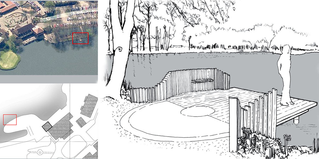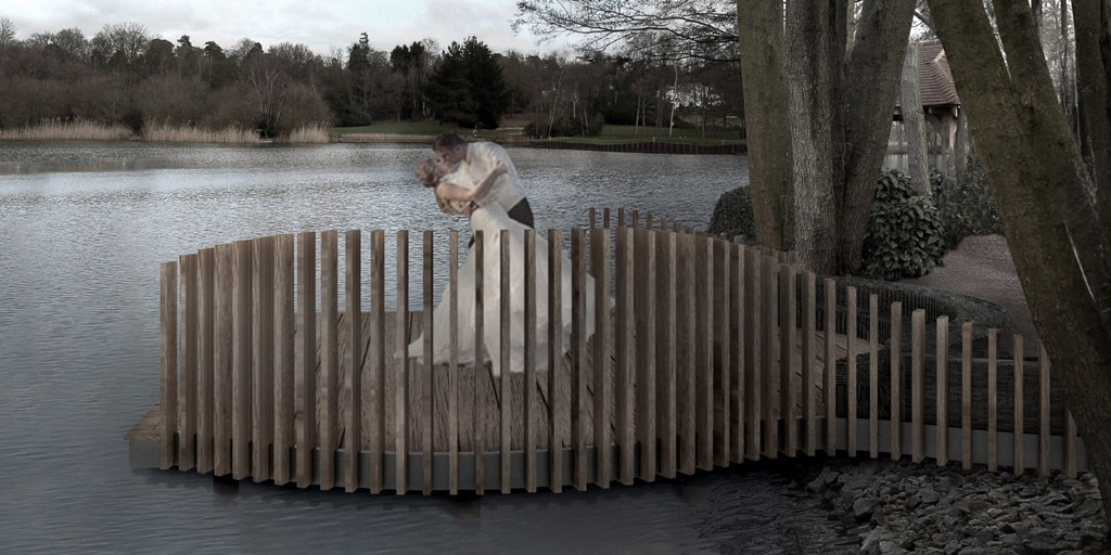 Commissioned by the golf club to design a new jetty and focal point for the lake, providing a location for wedding reception photographs. The concept of the ‘palm of a hand’ reaching out across the lake became the inspiration for the design. |